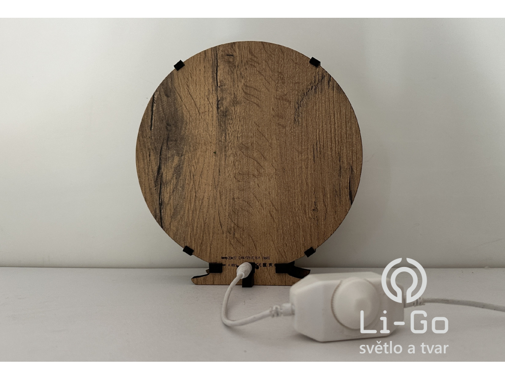Obrazová LED lampa má podsvícenou přední stěnu. Boky má lampa otevřené a světlo se tak šíří do prostoru a decentně osvětlí interiér. Lampa je osazena LED diodami a napájena externím zdrojem napětí na 12V do zásuvky. Součástí svítidla je otočný stmívač a zdroj.