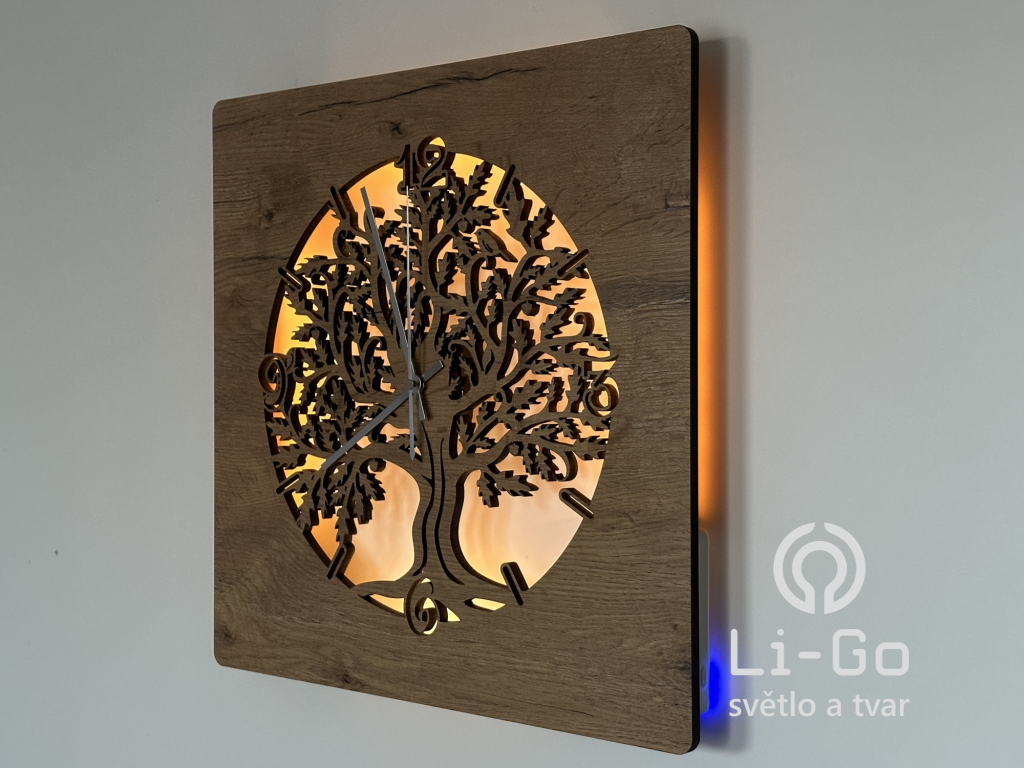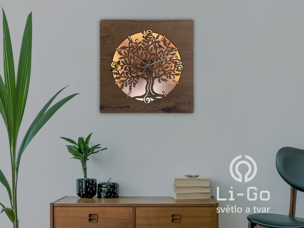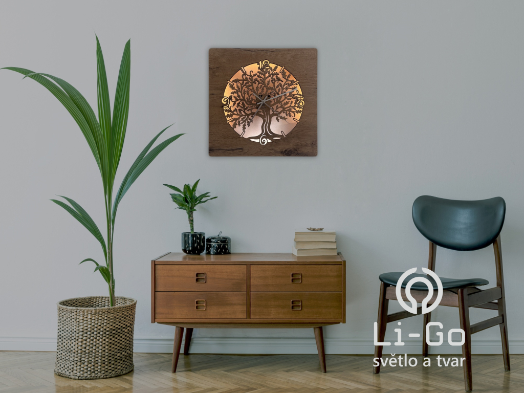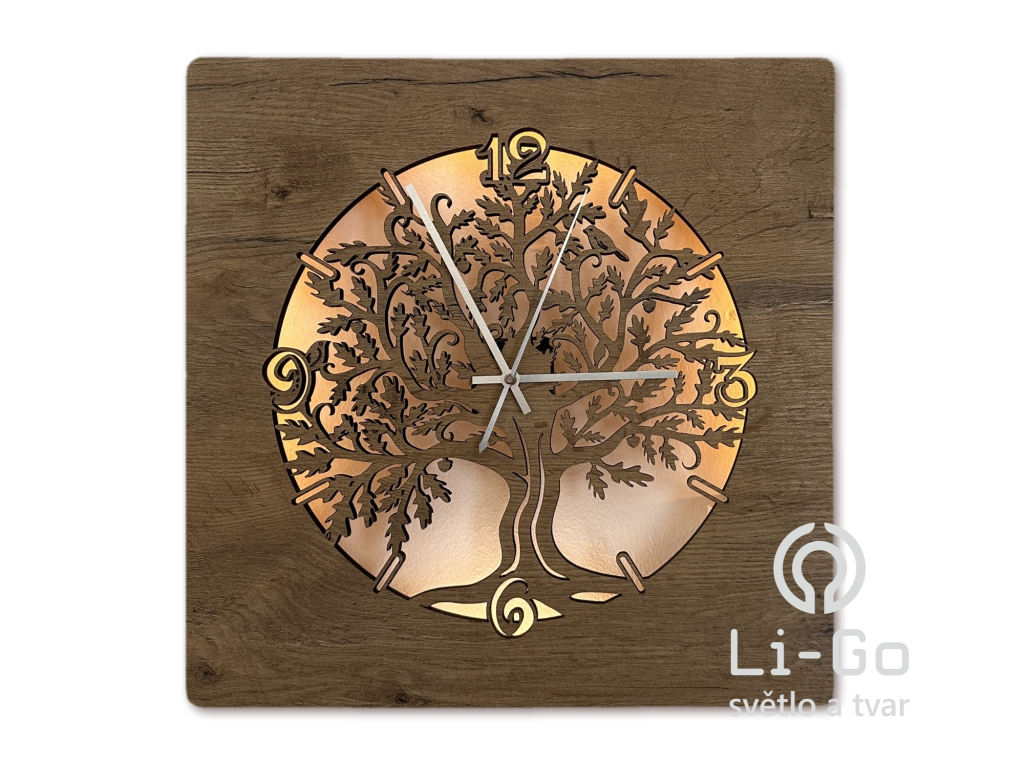 "Dub v kruhu" Světelné hodiny s baterií, 42/50 cm včetně dálkového ovládání