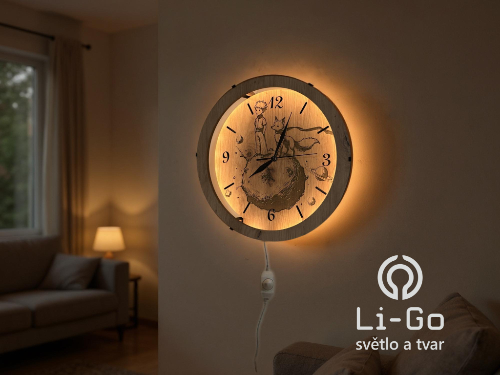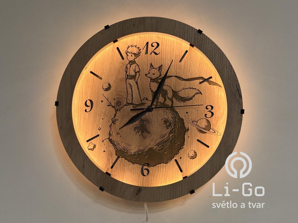 "Malý princ" světelné hodiny s powerbankou a pohybovým čidlem/dub světlý