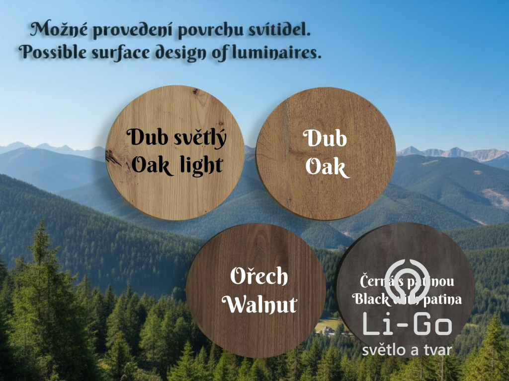 - Povrch svítidla ("dekor") evokuje přírodní struktury a působí přirozeně, harmonicky.