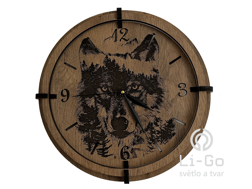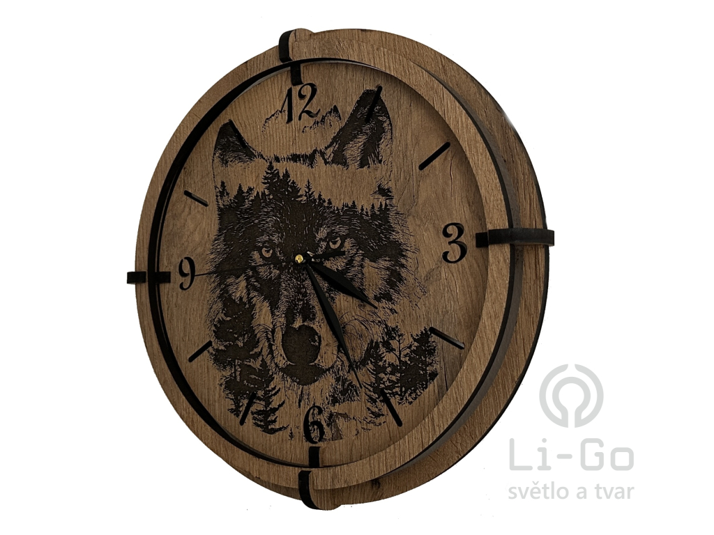 "Vlk" Dřevěné hodiny 32 cm