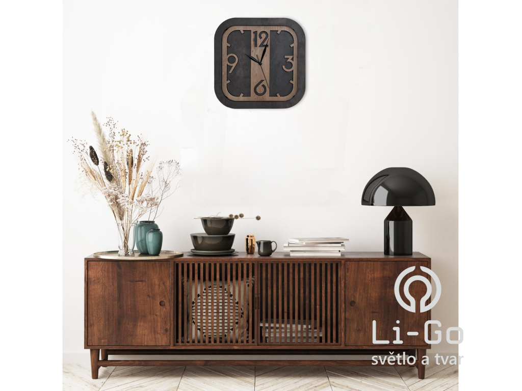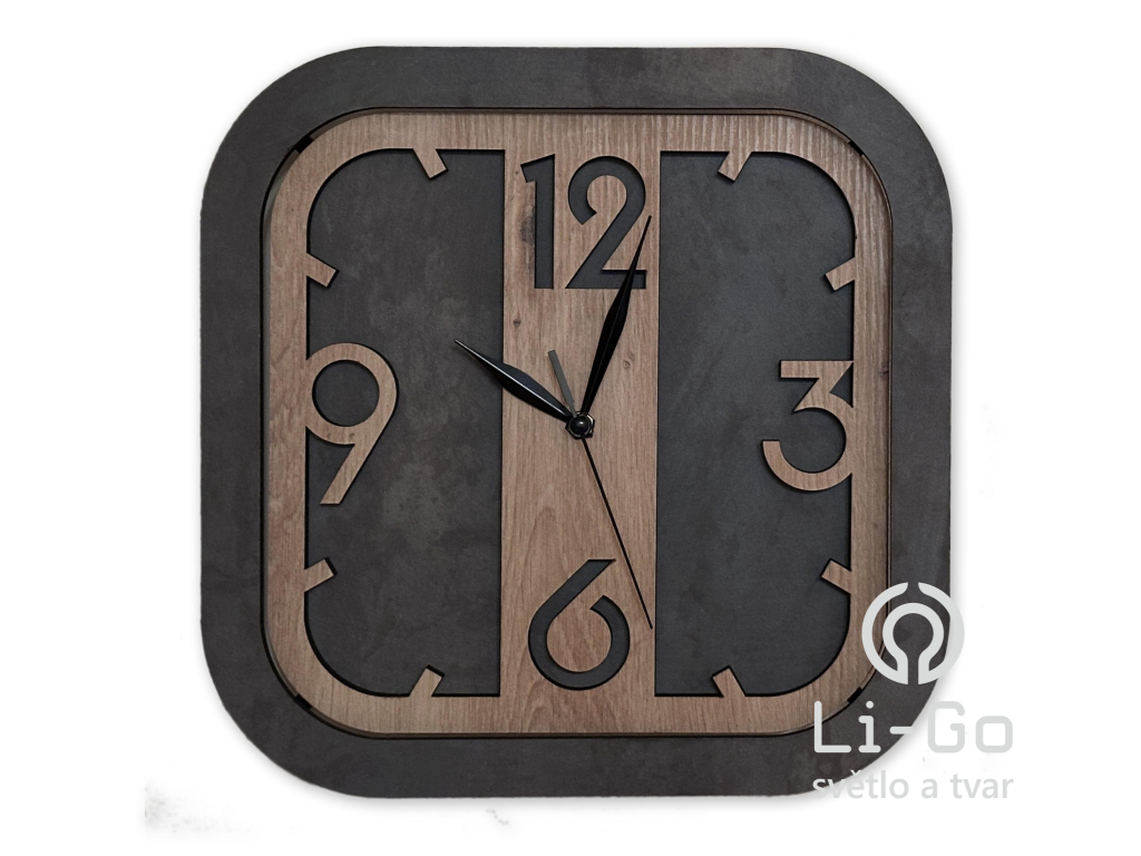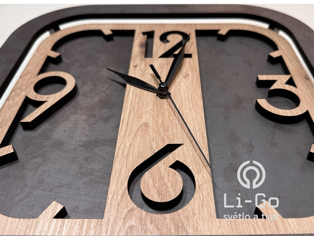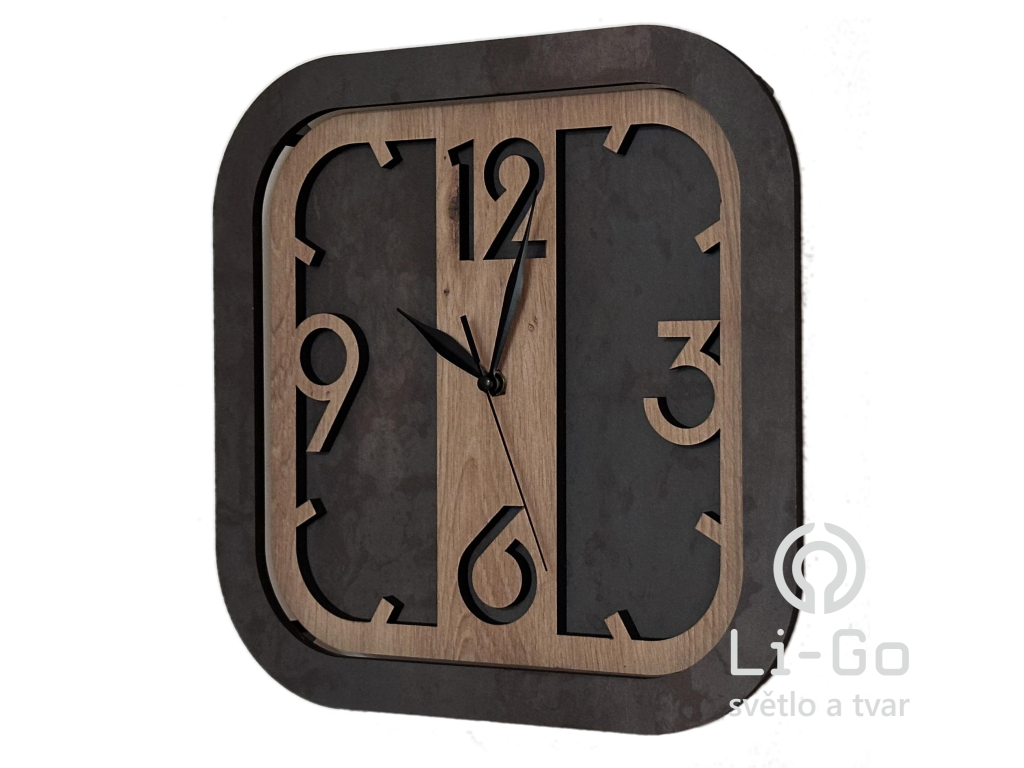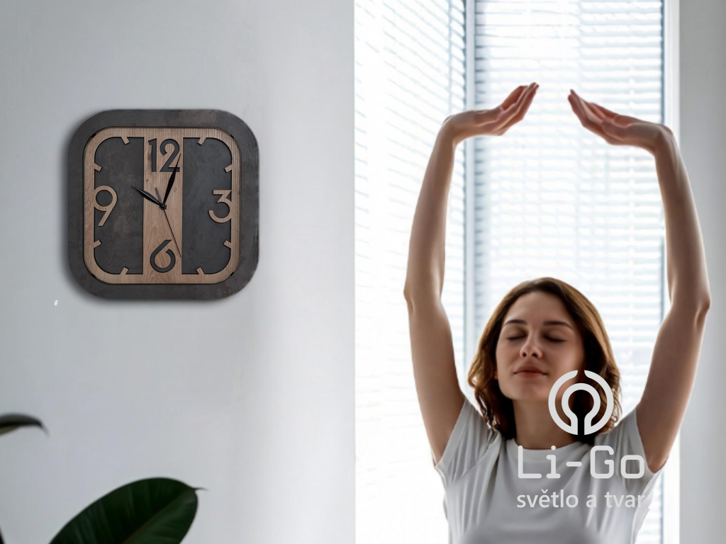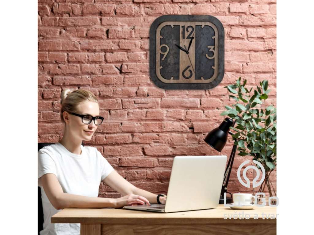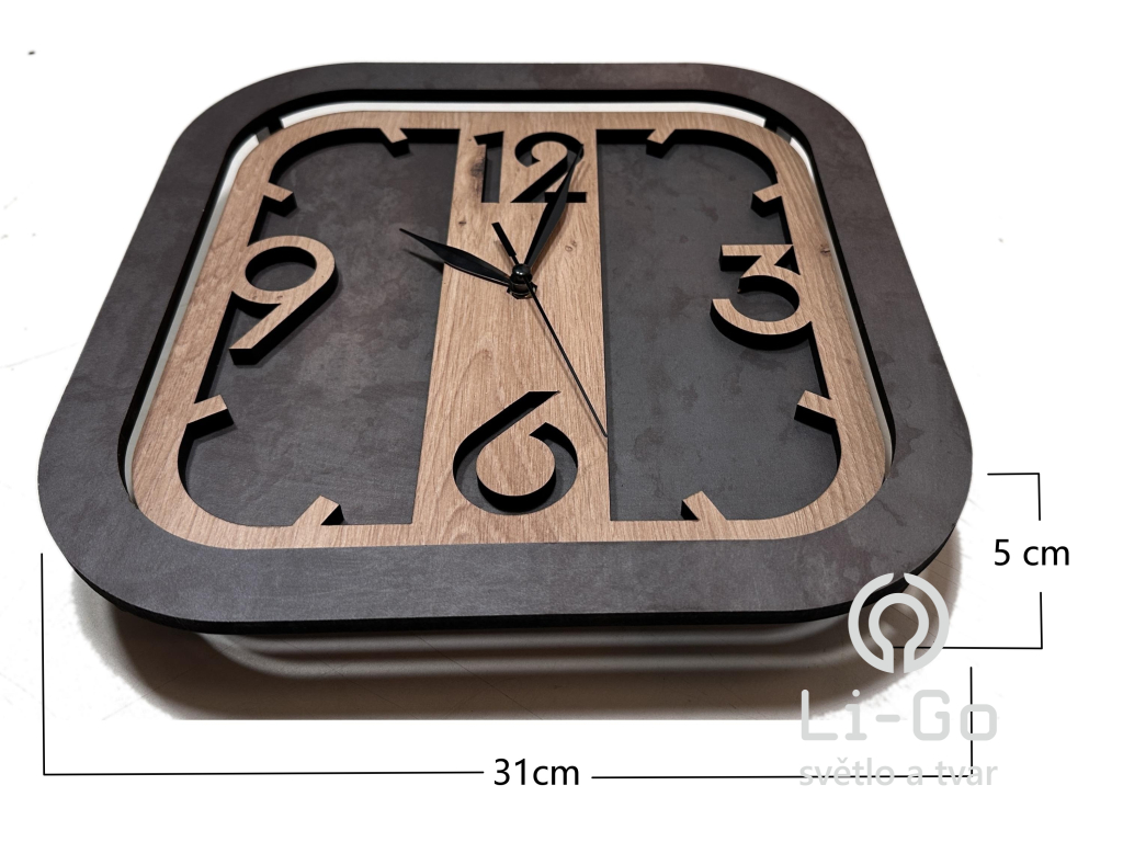 Dřevěné hodiny nástěnné "Čtverec" černá s patinou/dub světlý 31 cm