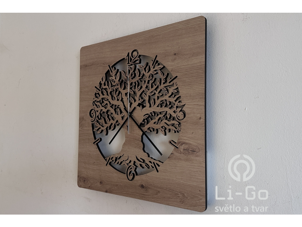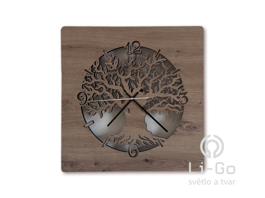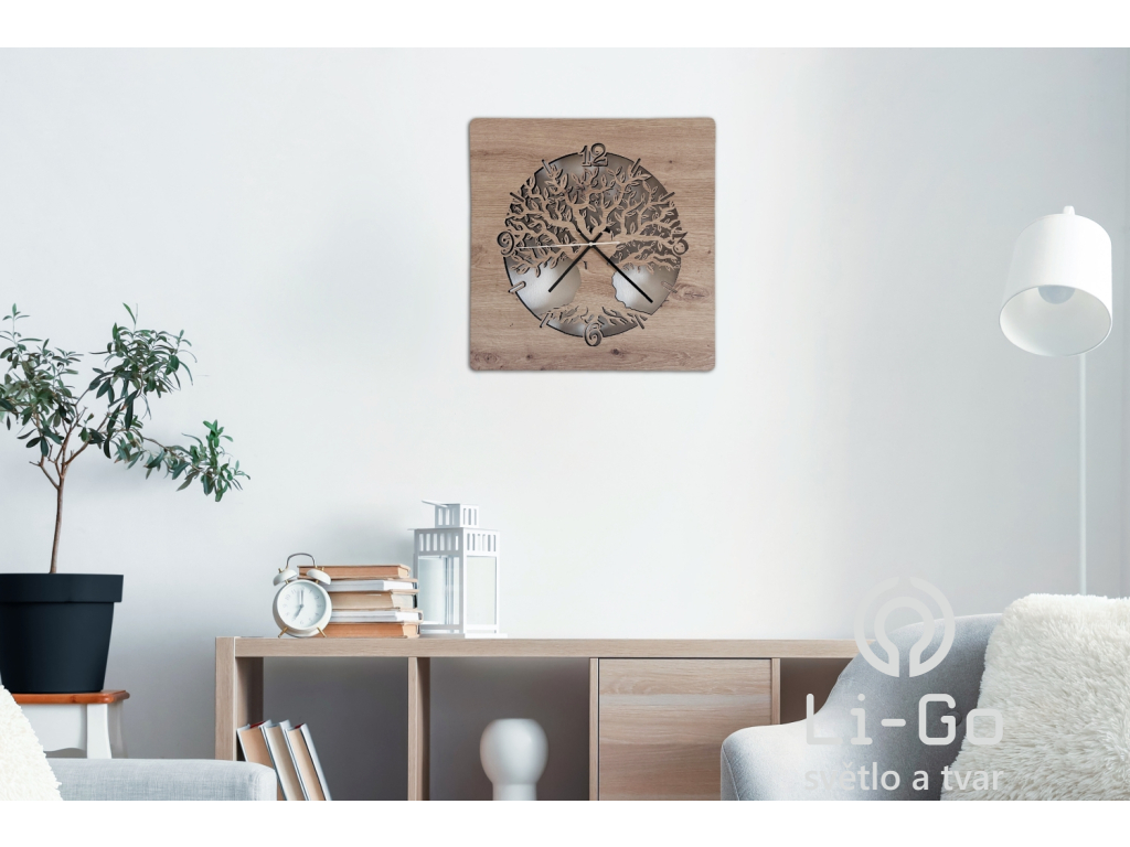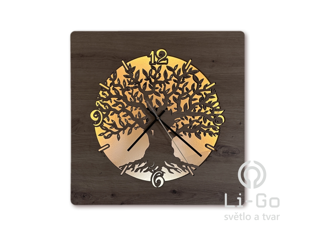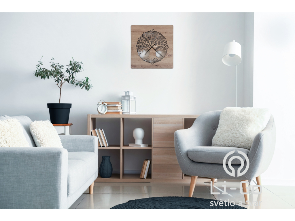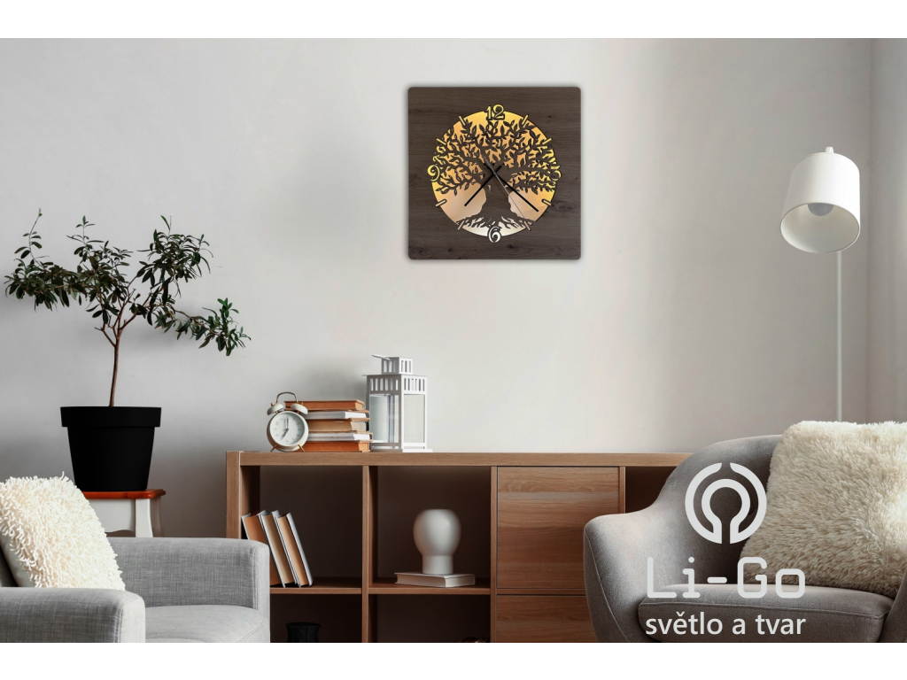 "Olivovník v kruhu" Světelné hodiny s baterií, 42x42 cm včetně dálkového ovládání