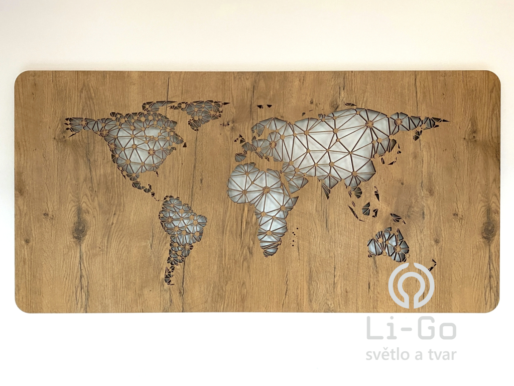 Dřevovláknitá deska 8mm. Středně tvrdá dřevovláknitá deska, na kterou je nalisován dřevěný nebo jiný dekor. Povrch se snadno ošetřuje, odolává vlhku či přímému slunci. Více informací o naši aktuální nabídce: "Dekory - povrchová úprava". Do desky je vyřezán vybraný motiv, deska je po obvodu vyztužena rámem, který je nalepen na zadní stranu svítidla.