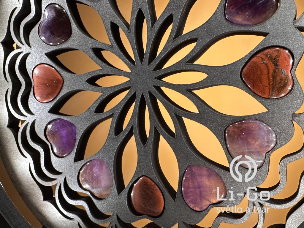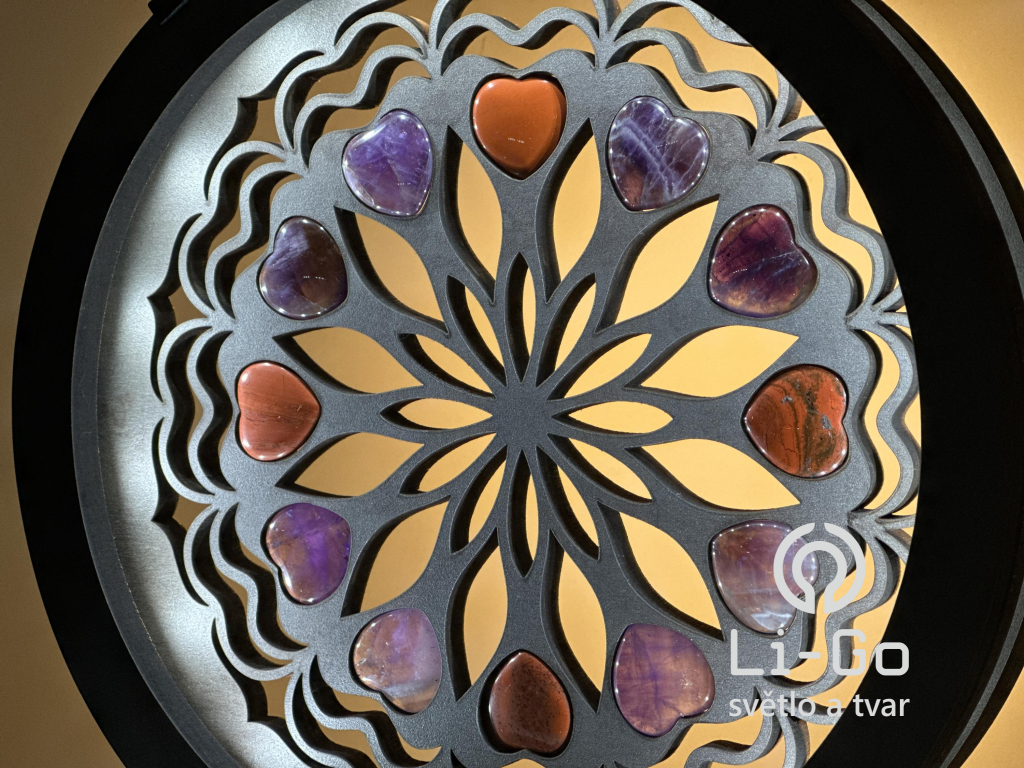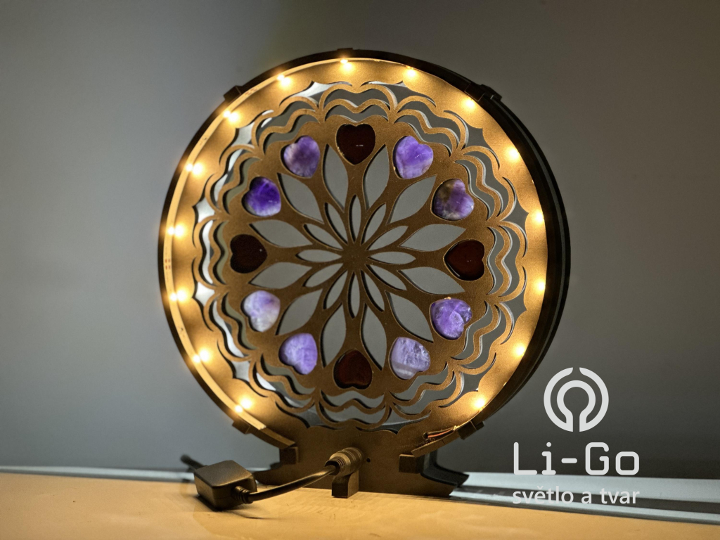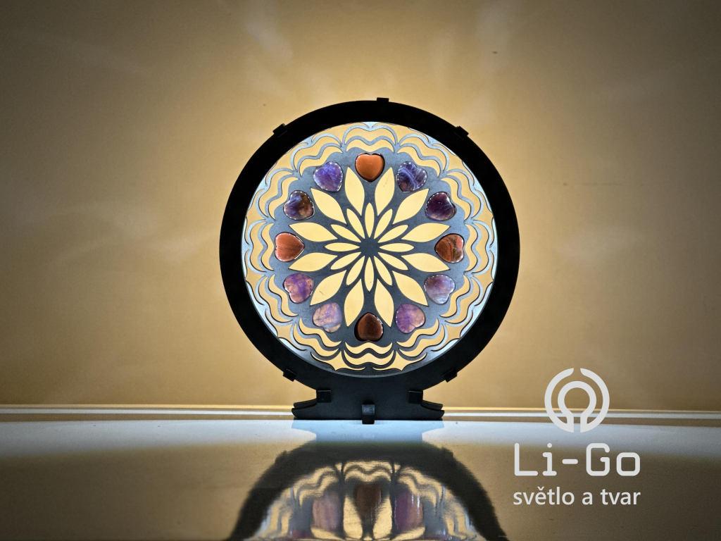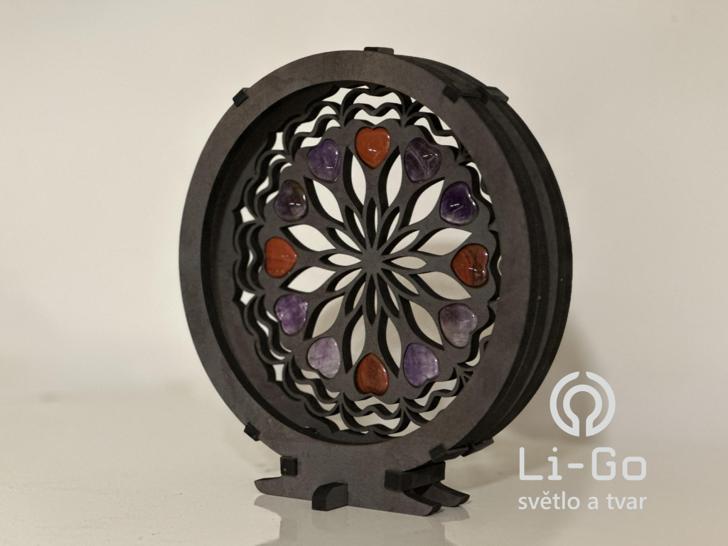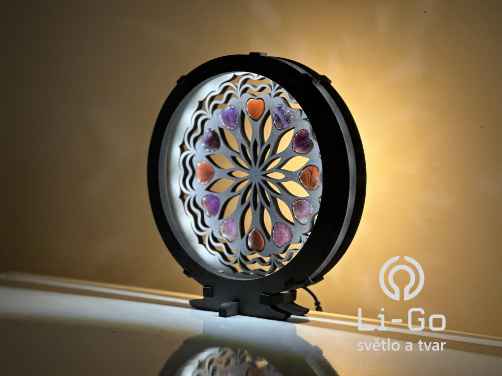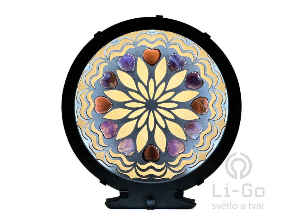"Srdce, ametystová/karneolová mandala" Stolní lampa 20x22 cm černá s patinou