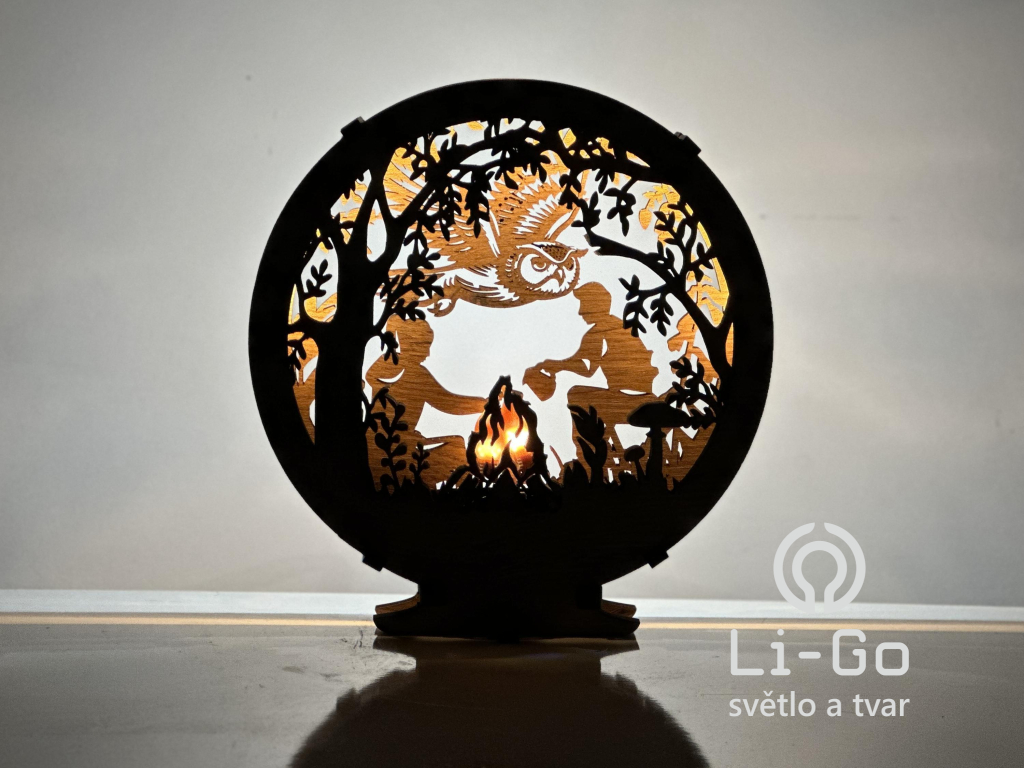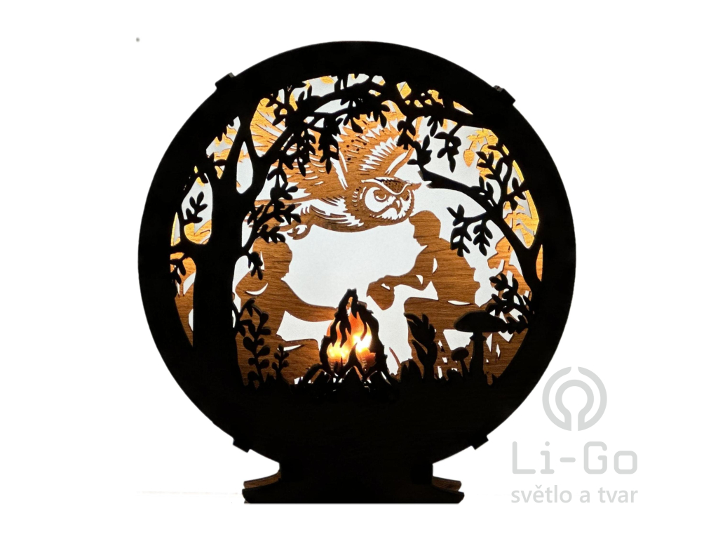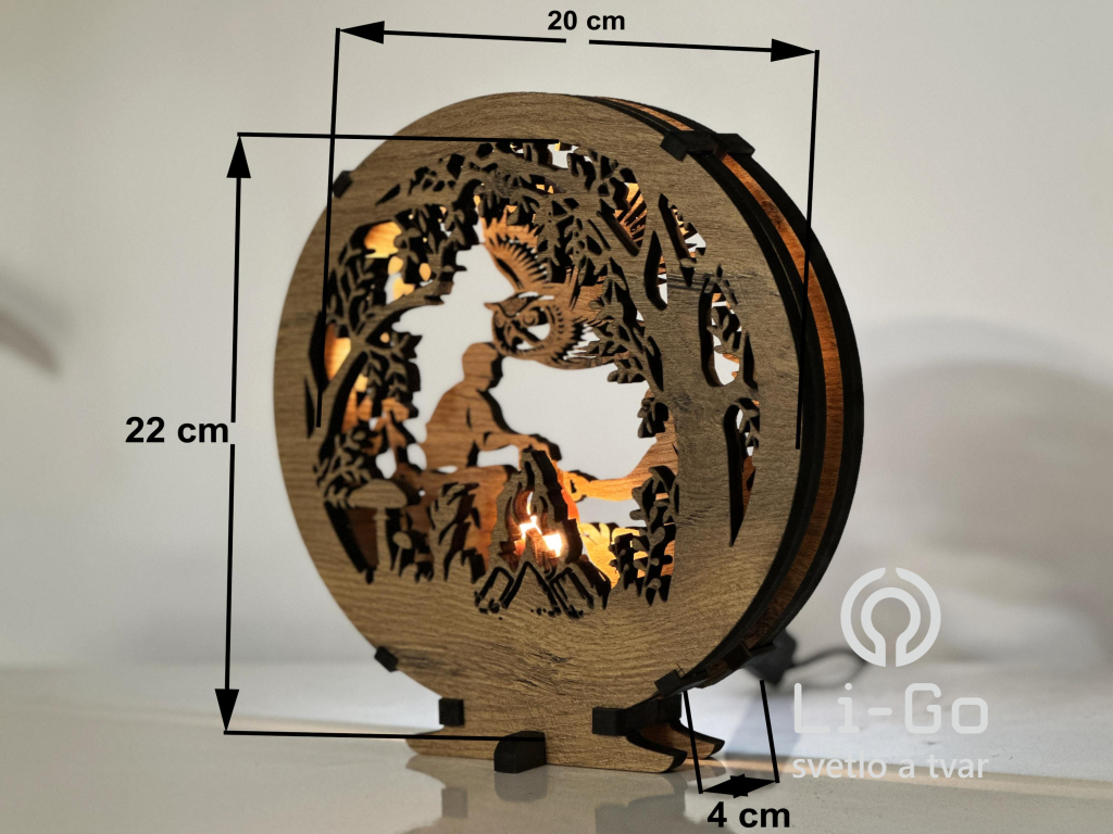 "U ohně" dřevěná lampa s LED plameny 20x22 cm