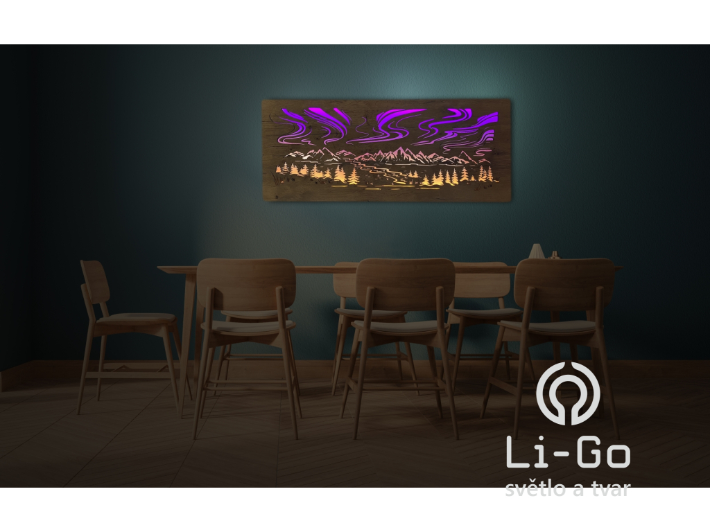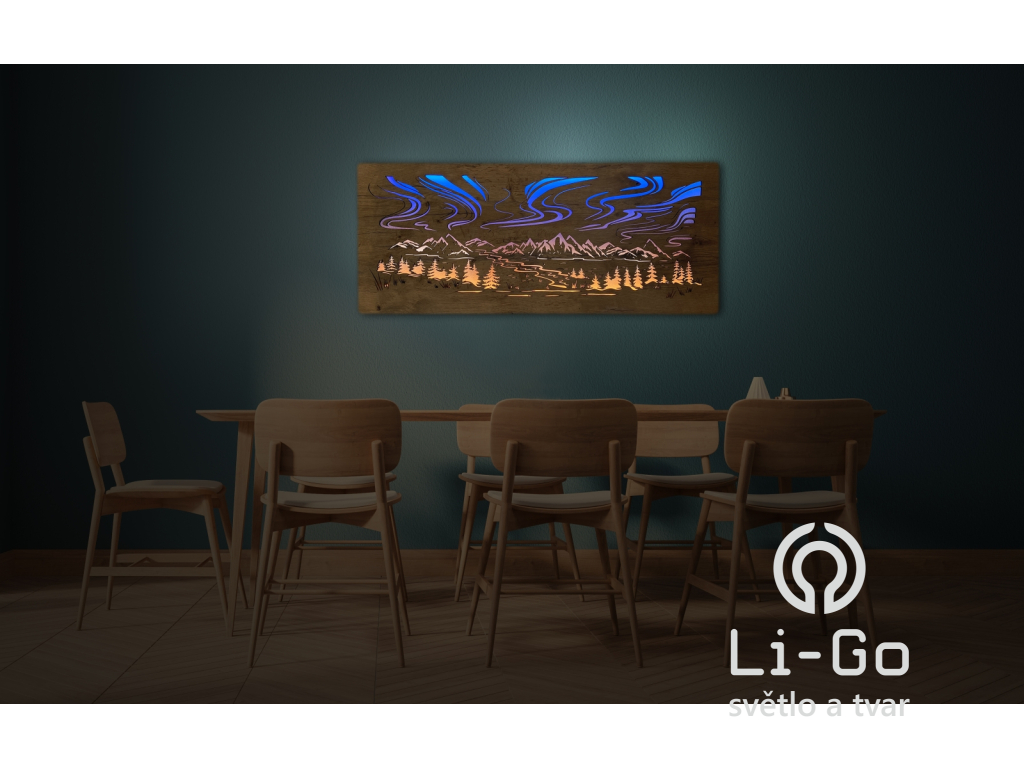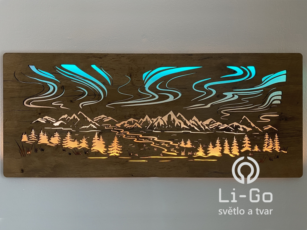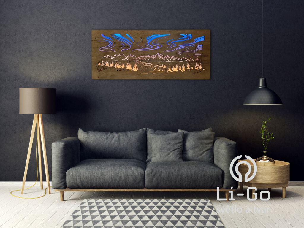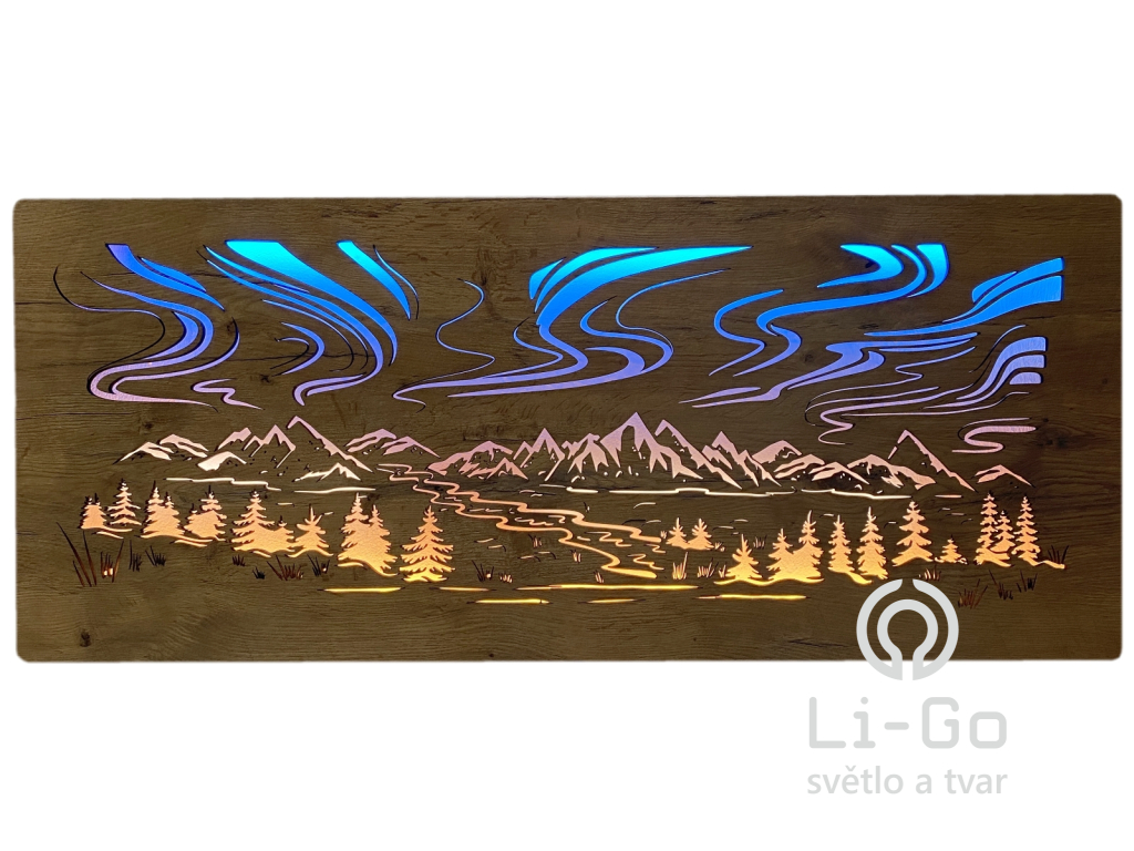 "Polární záře" světelný RGBW obraz 230V 120x50cm