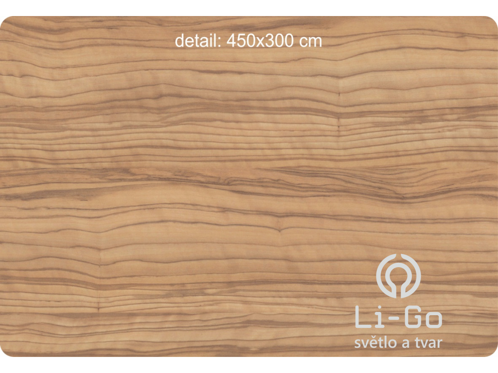 - Ořech má povrch s jemnou strukturou (reliéf) dřeva, polomatný. Tmavý odstín, kresba dřeva příliš nevystupuje, odstín je hnědý včetně suků. Na ořechu příliš nevyniká řezaná (černá) hrana.