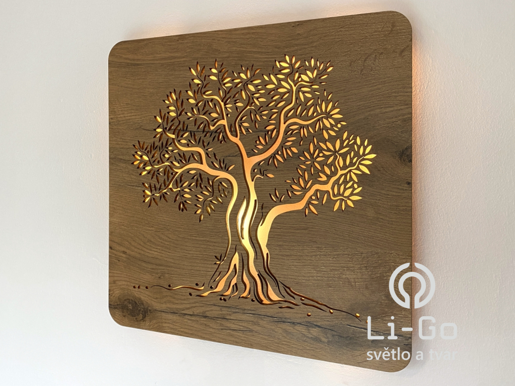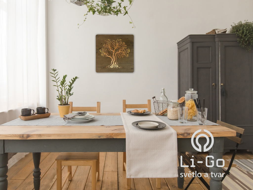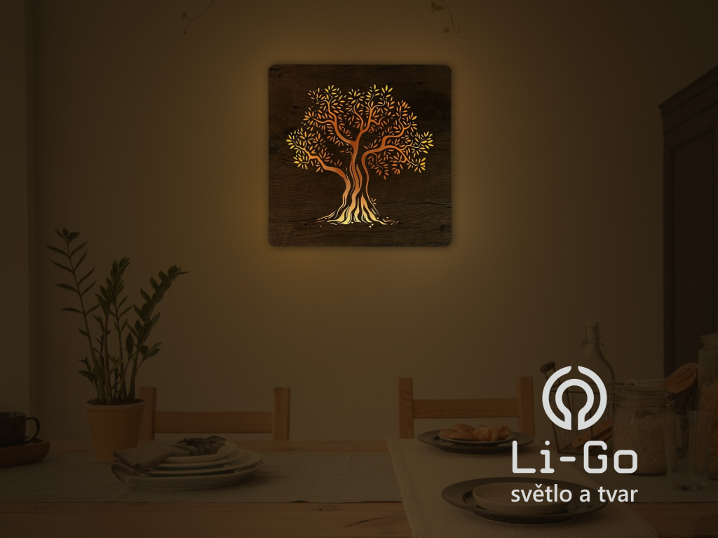 "Olivovník" světelný obraz s baterií 42x42 cm včetně dálkového ovládání