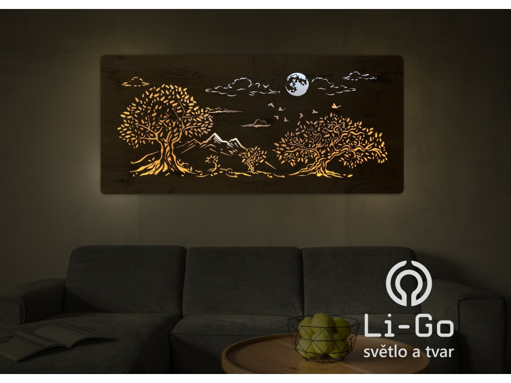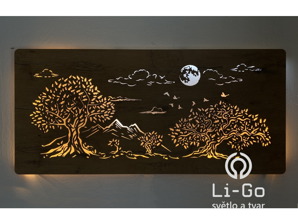 "Čtyři duby a měsíc" světelný obraz 230V 130x60cm