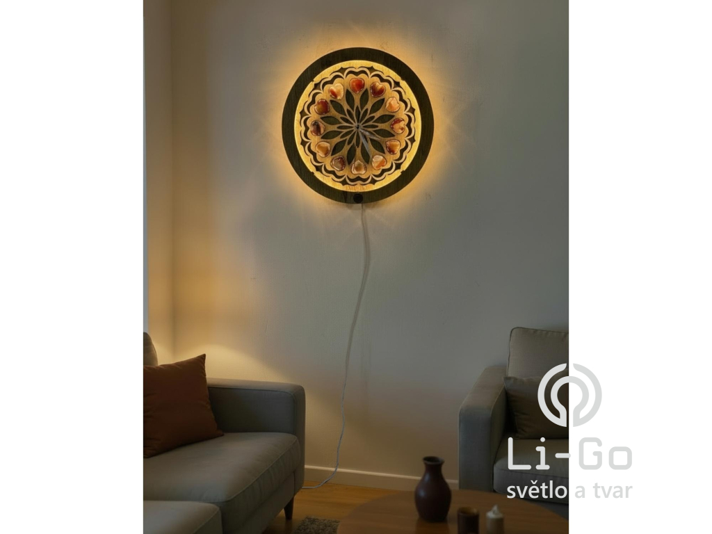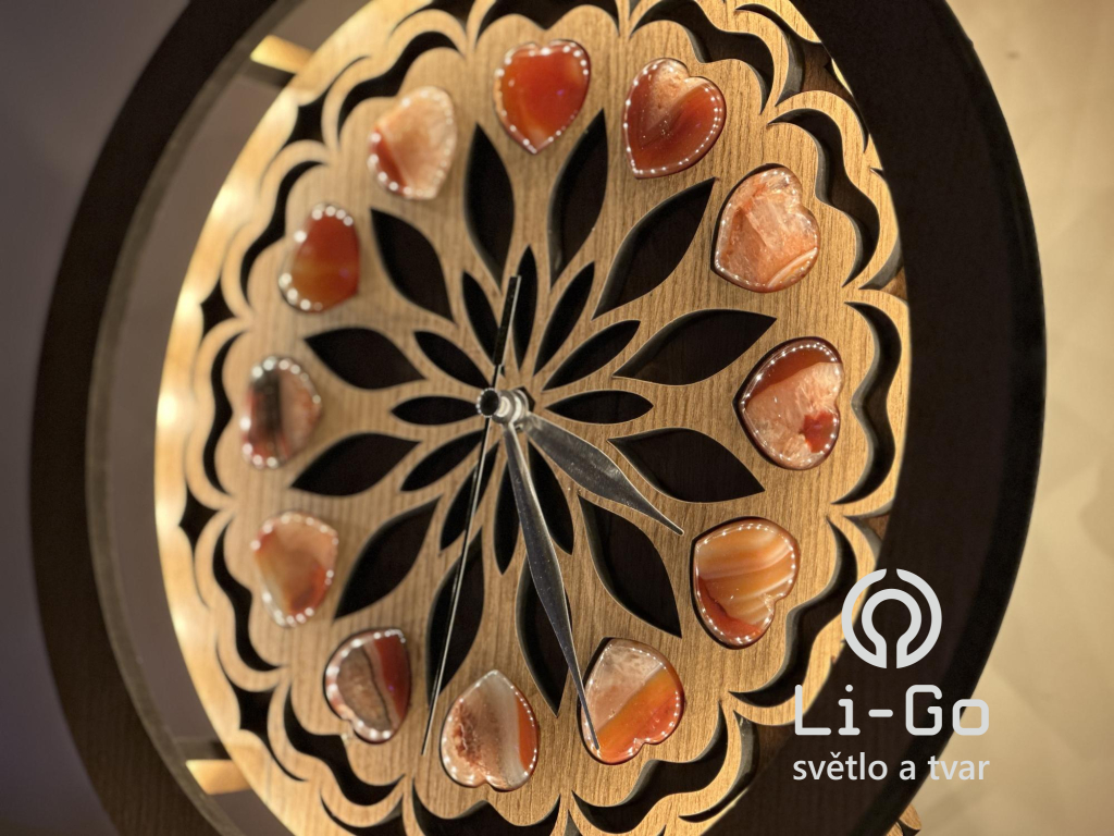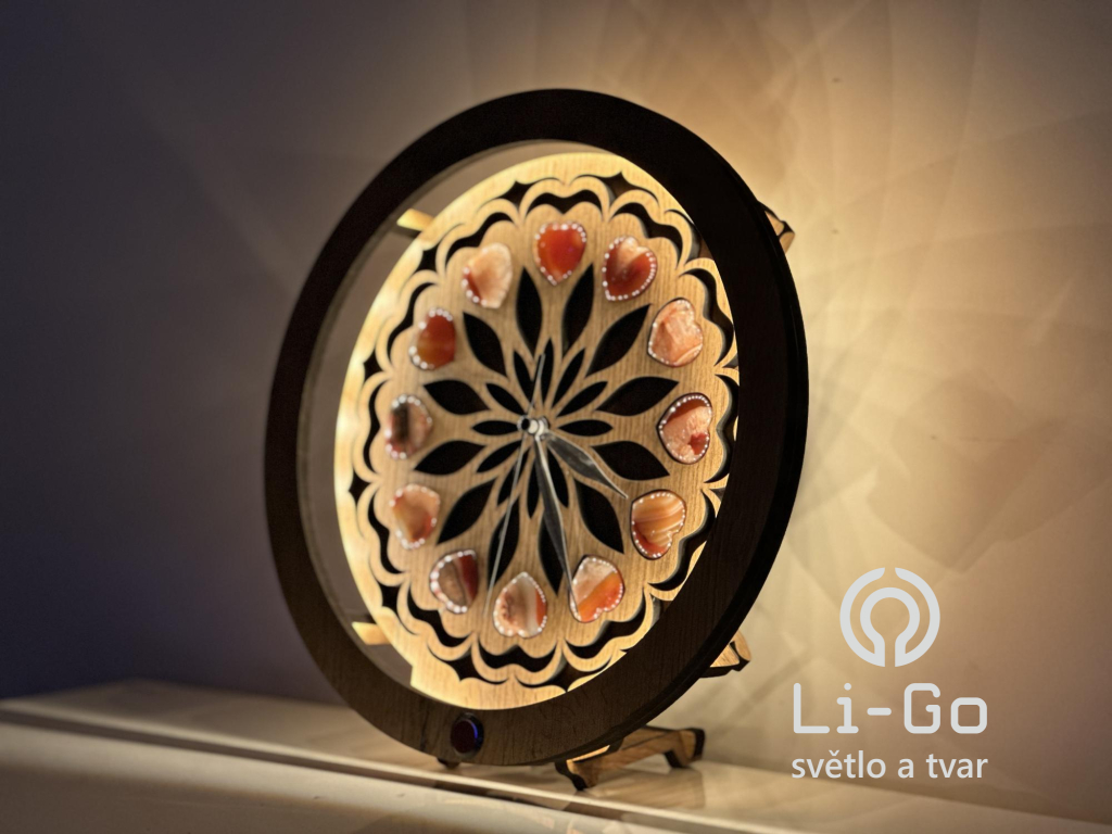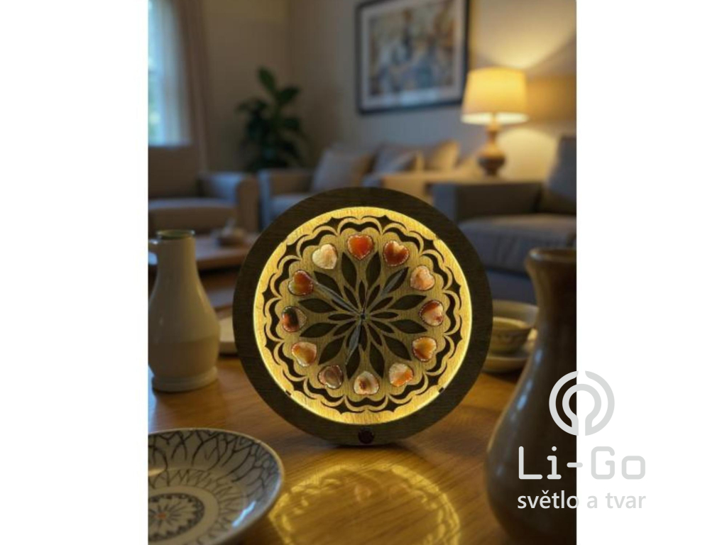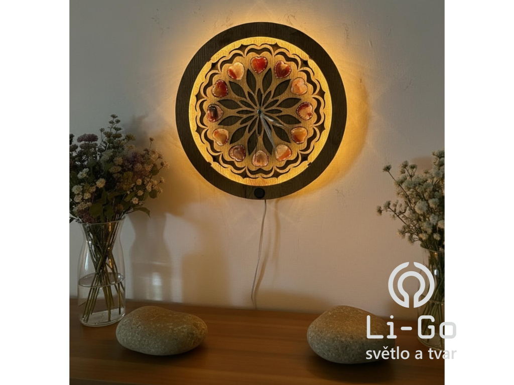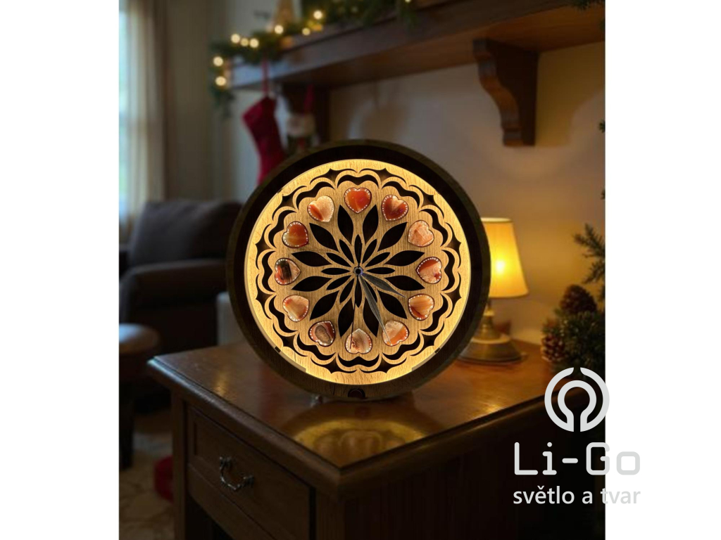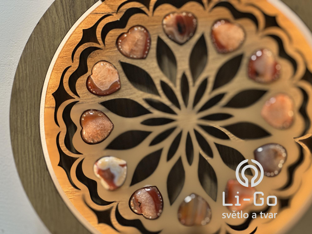 "Dvanáct achátových srdcí" dřevěná lampa/obraz 230V/31 cm dub