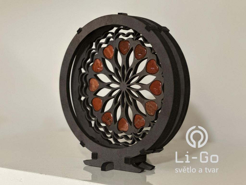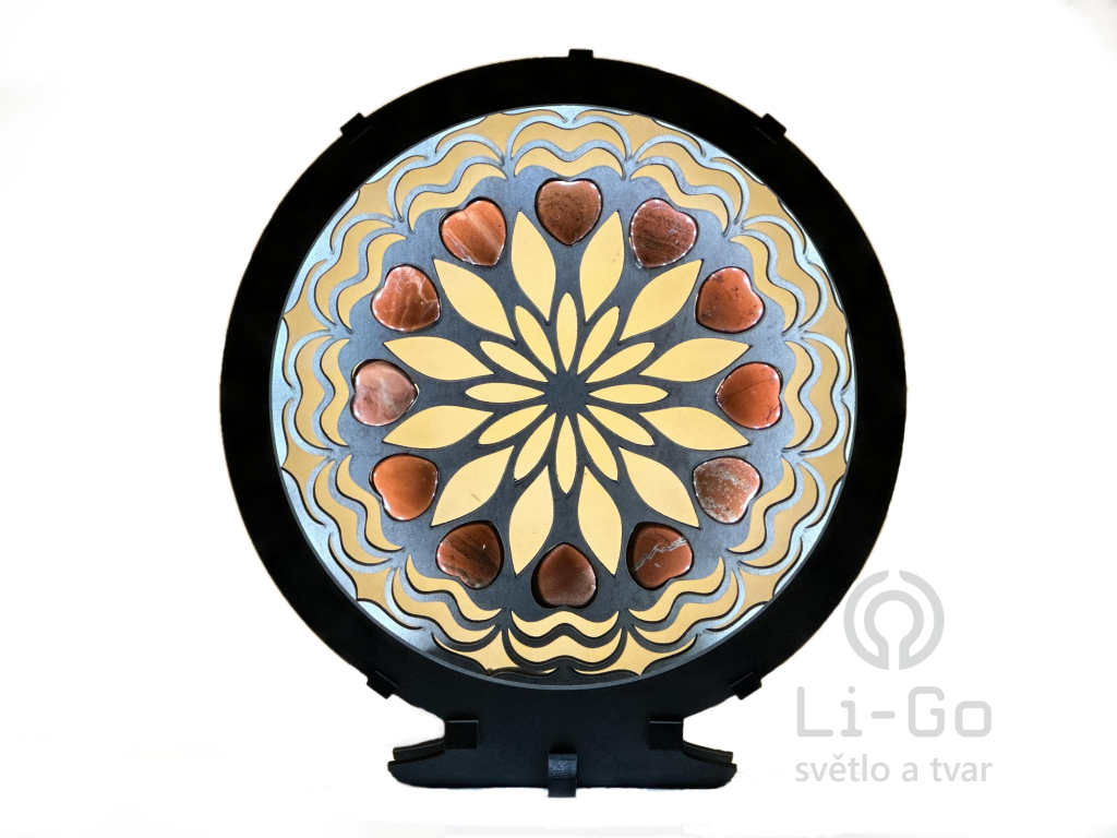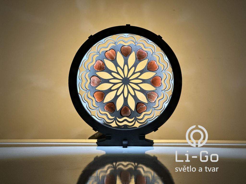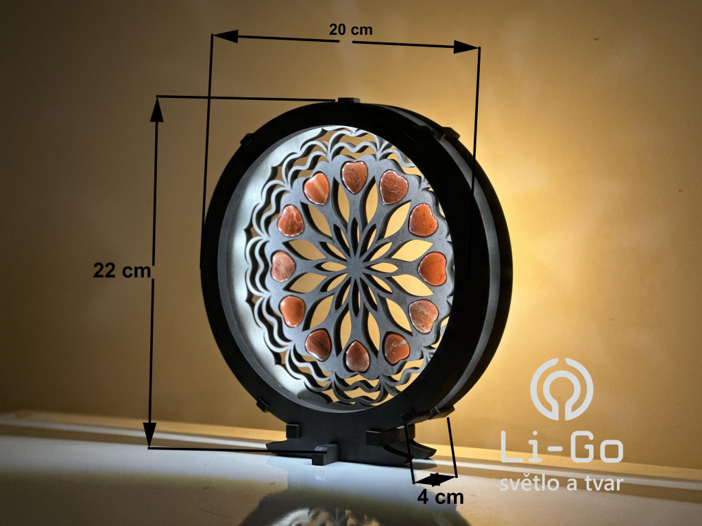 "Srdce, karneolová mandala" Stolní lampa 20x22 cm černá s patinou