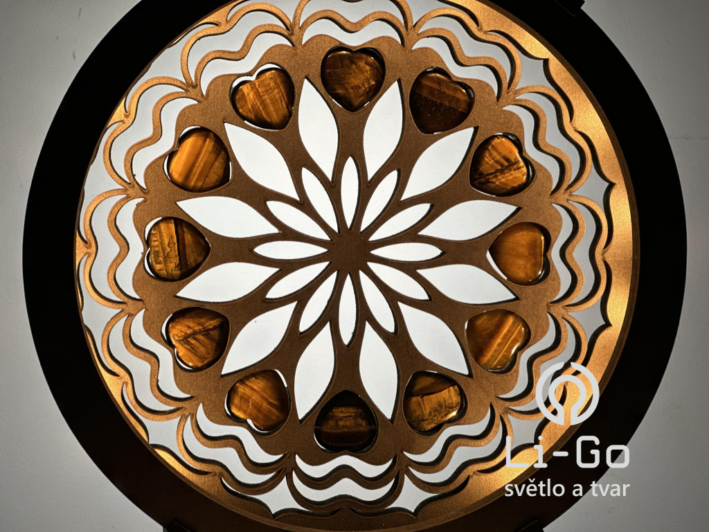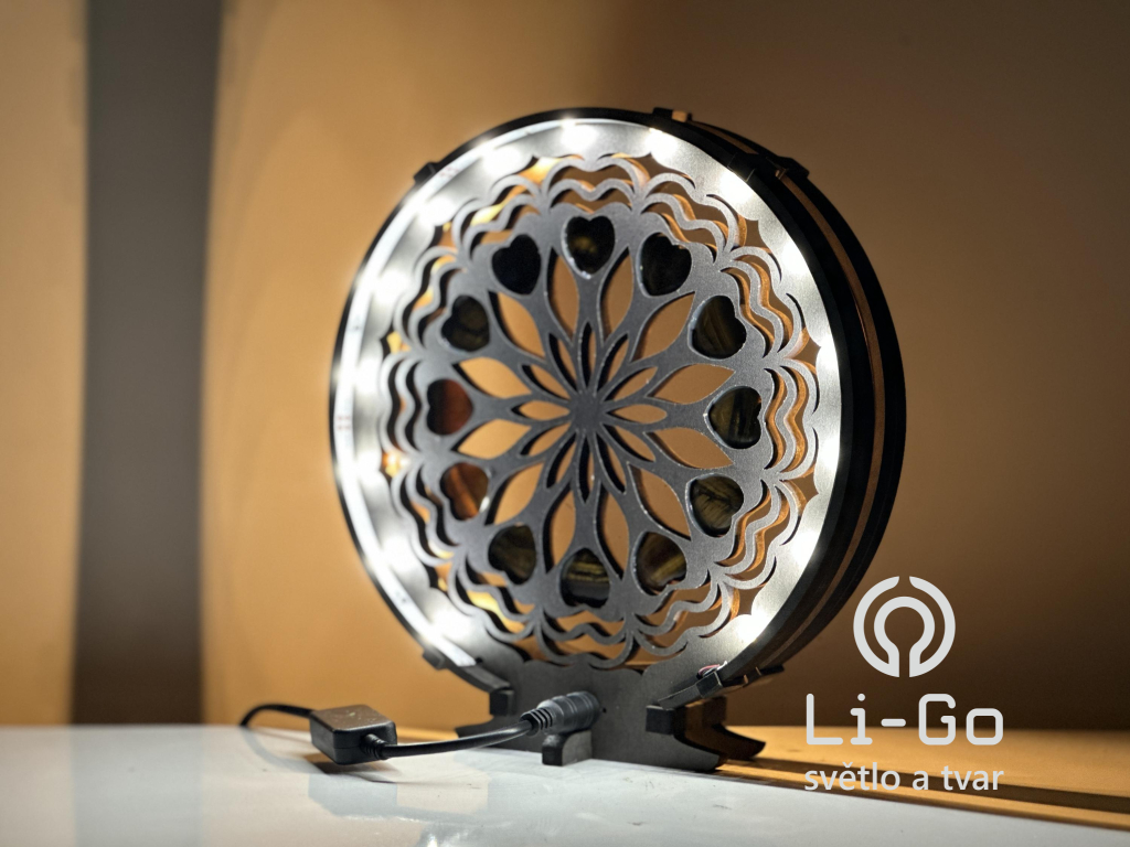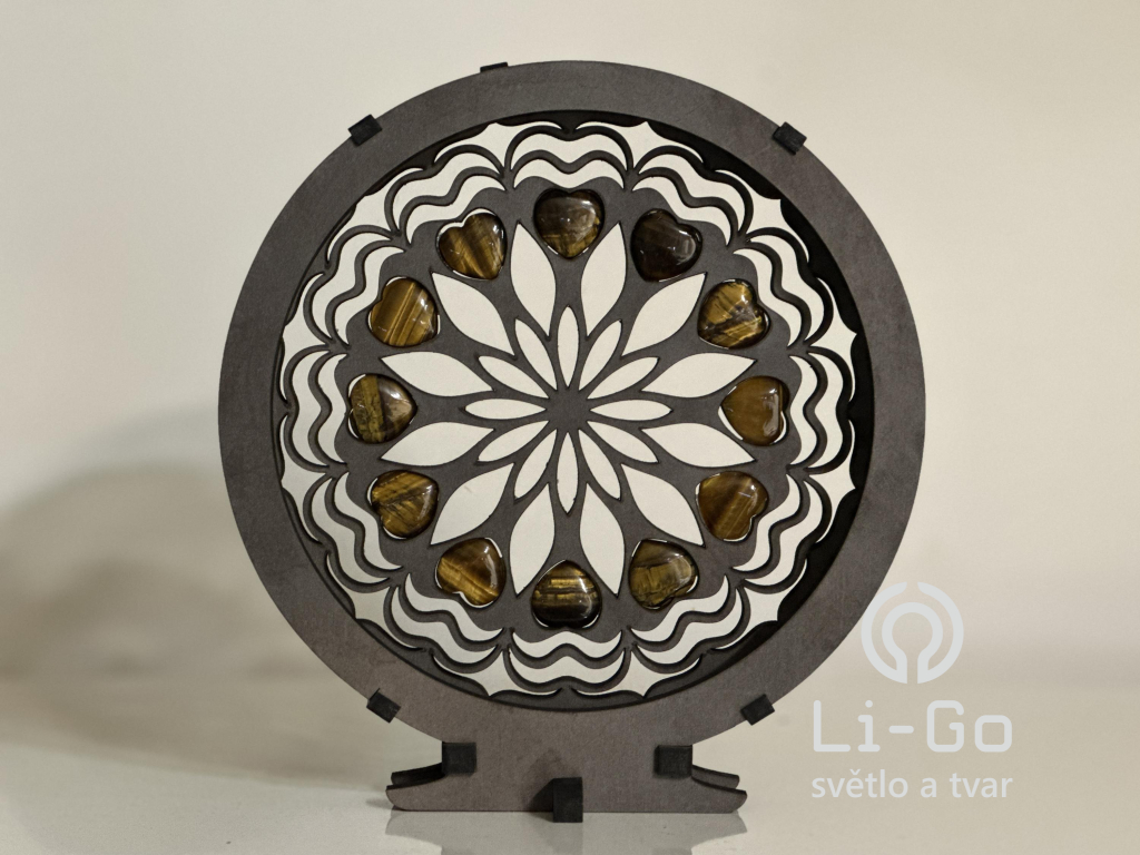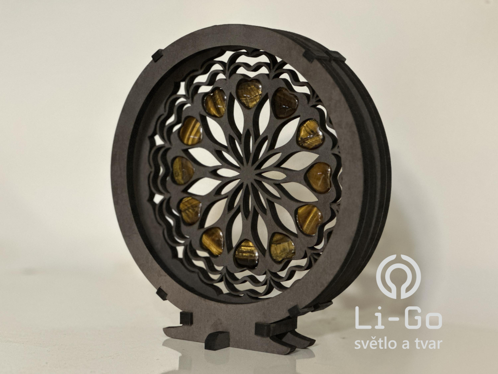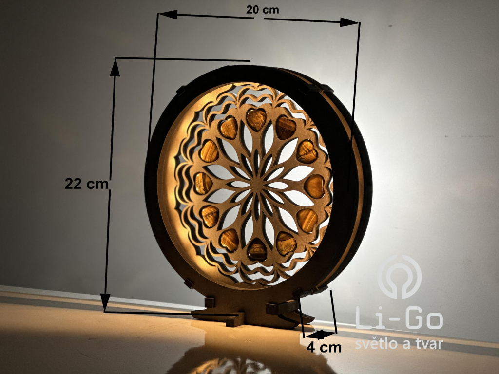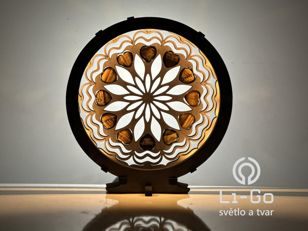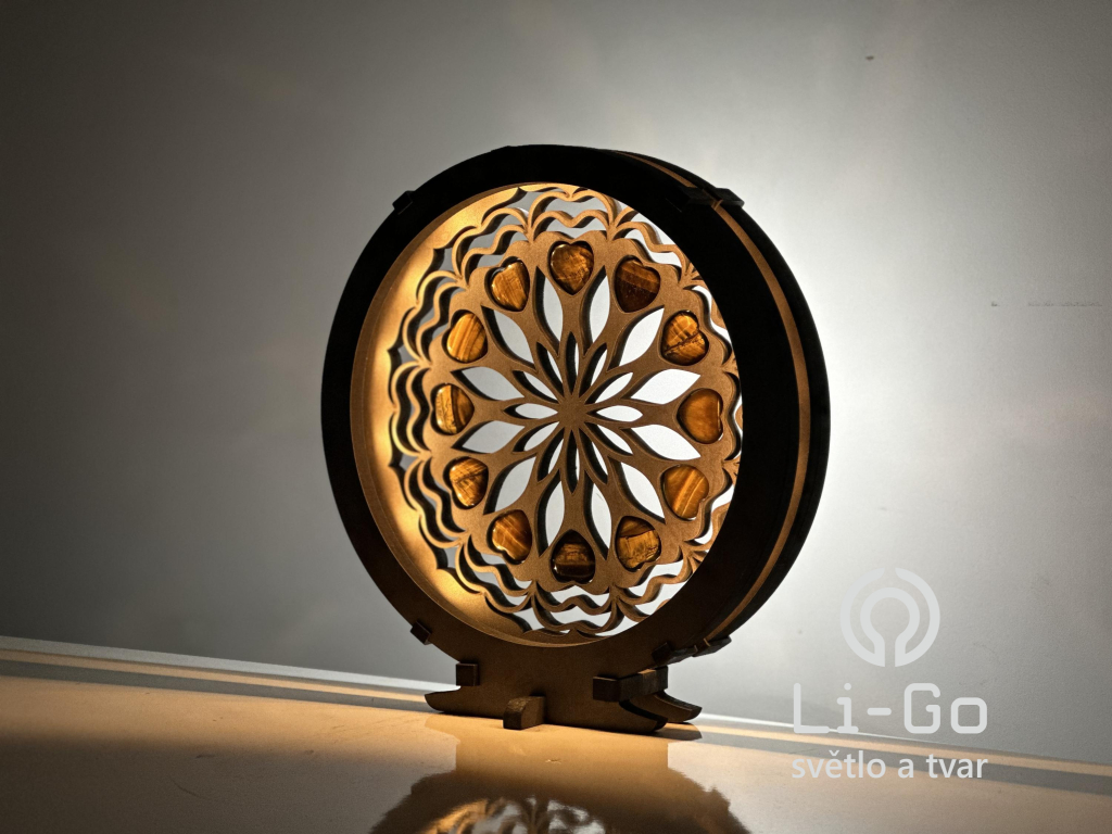 "Srdce, mandala s tygřím okem" Stolní lampa 20x22 cm černá s patinou