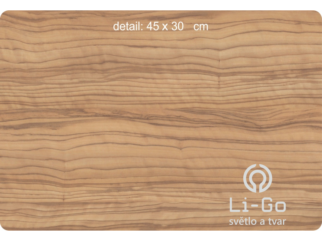 - Oliva je sametově matná, má hladký povrch, odstín světlý až středně tmavý. Má výraznou kresbu dřeva a je zcela bez suků. Odstíny jsou velmi teplé, okrové až oranžové.