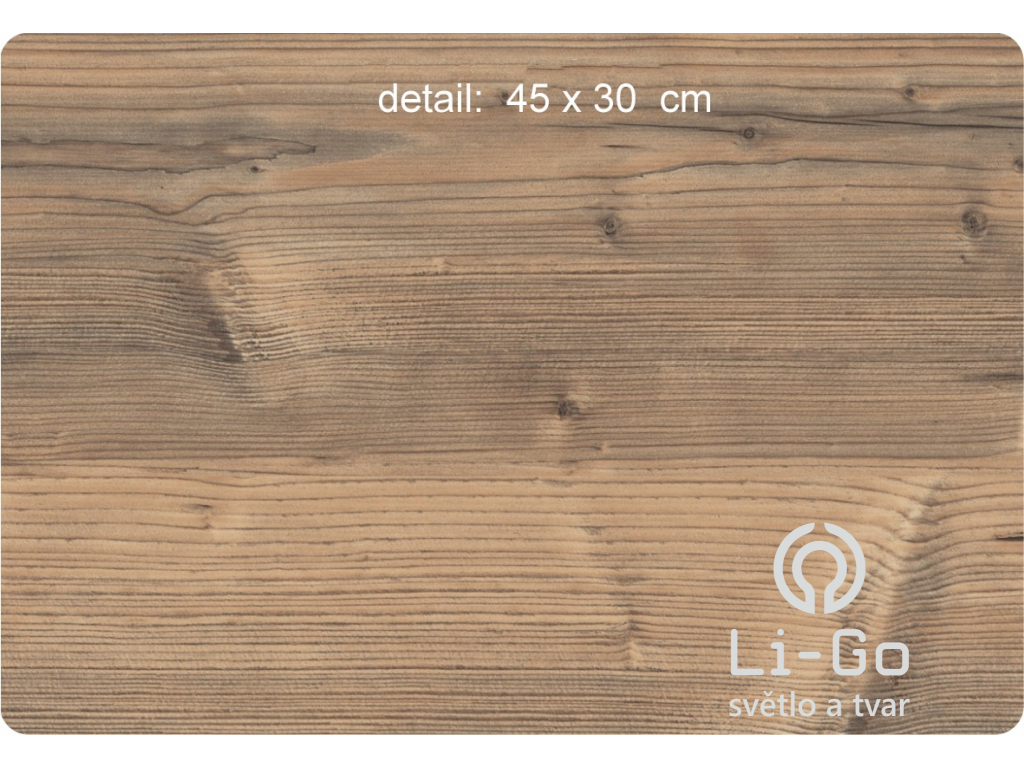 Dřevovláknitá deska 8mm. Středně tvrdá dřevovláknitá deska, na kterou je nalisován dřevěný nebo jiný dekor. Povrch se snadno ošetřuje, odolává vlhku či přímému slunci. Více informací o naši aktuální nabídce: "Dekory - povrchová úprava". Do desky je vyřezán vybraný motiv, deska je po obvodu vyztužena rámem, který je nalepen na zadní stranu svítidla.
