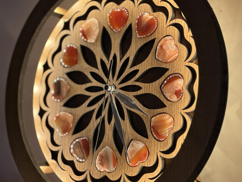 - Achátové srdce dodávají lampě přírodní charakter a nadčasový vzhled. Každý kus působí jako malé umělecké dílo, které spojuje řemeslo, materiál a atmosféru do jednoho harmonického celku.