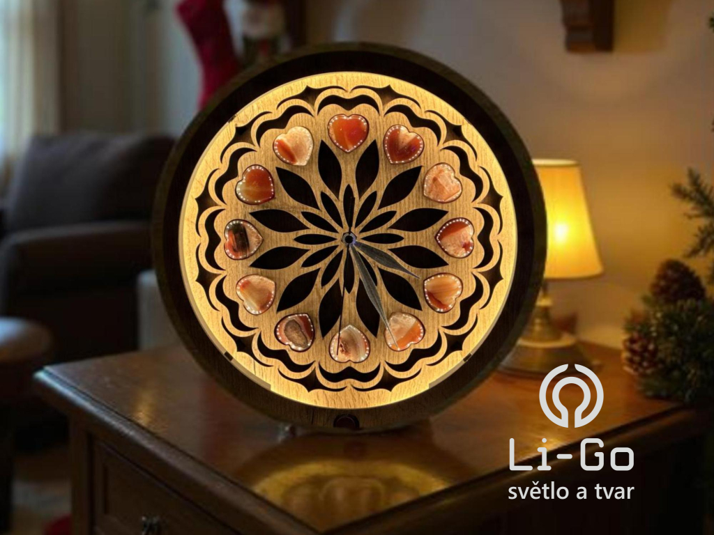 "Dvanáct achátových srdcí" dřevěná lampa/obraz s baterií a pohybovým čidlem/31 cm dub
