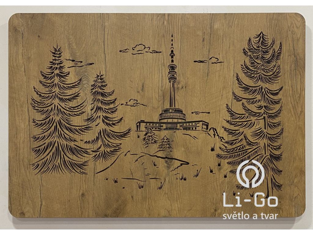 Dřevovláknitá deska 8mm. Středně tvrdá dřevovláknitá deska, na kterou je nalisován dřevěný nebo jiný dekor. Povrch se snadno ošetřuje, odolává vlhku či přímému slunci. Více informací o naši aktuální nabídce: "Dekory - povrchová úprava". Do desky je vyřezán vybraný motiv, deska je po obvodu vyztužena rámem, který je nalepen na zadní stranu svítidla.